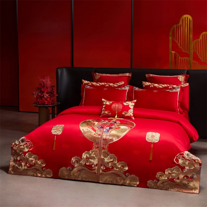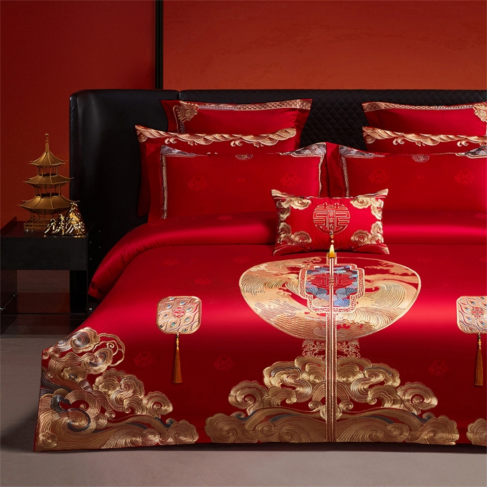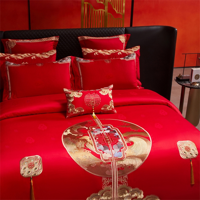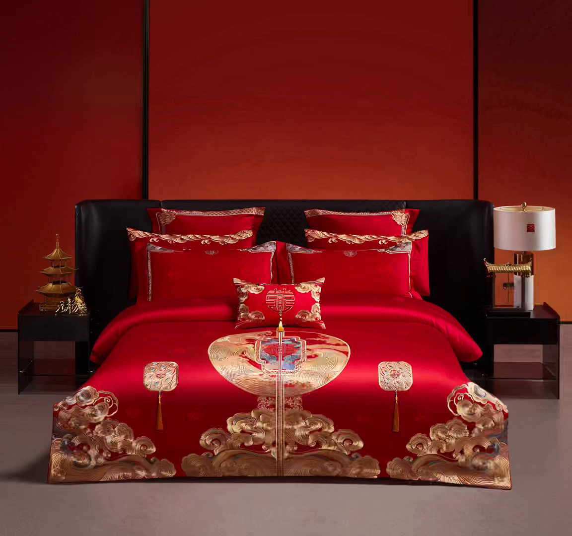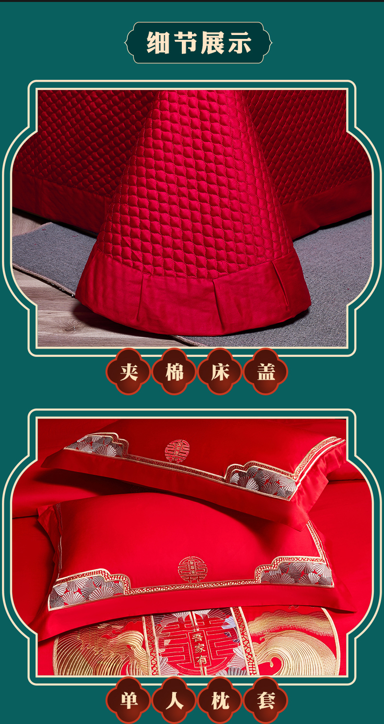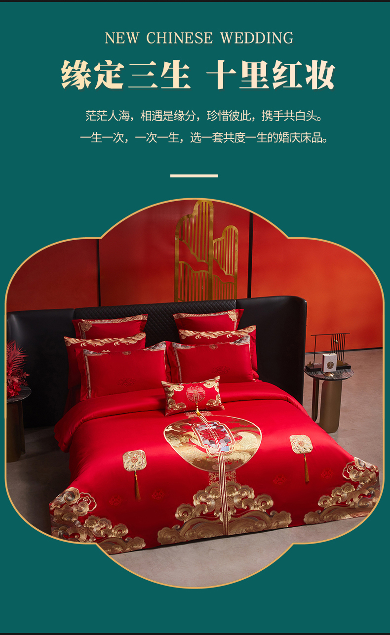 2025新款五全棉贡缎提花新中式婚庆多件套