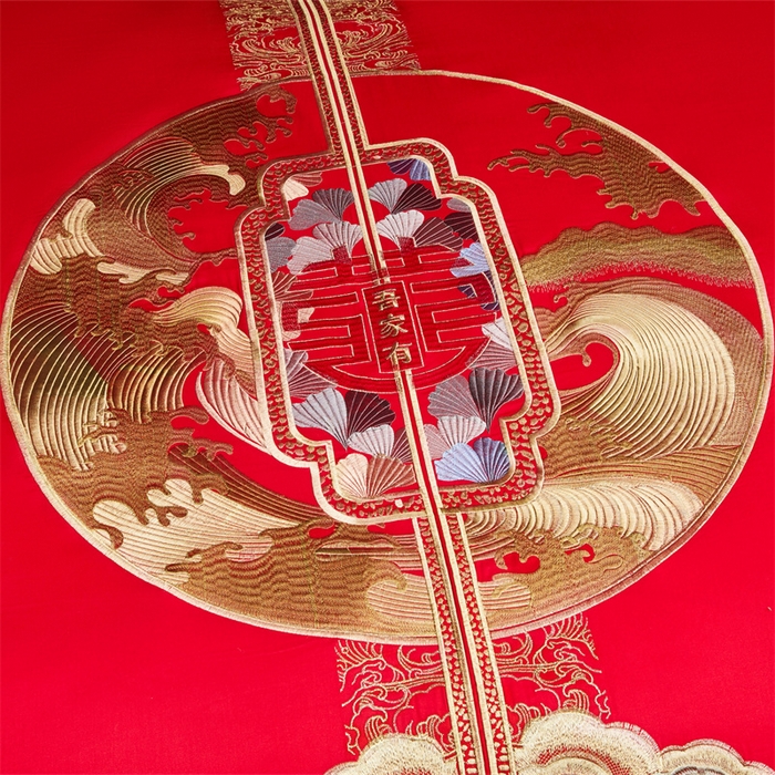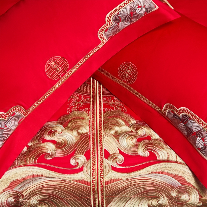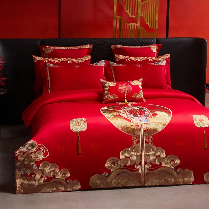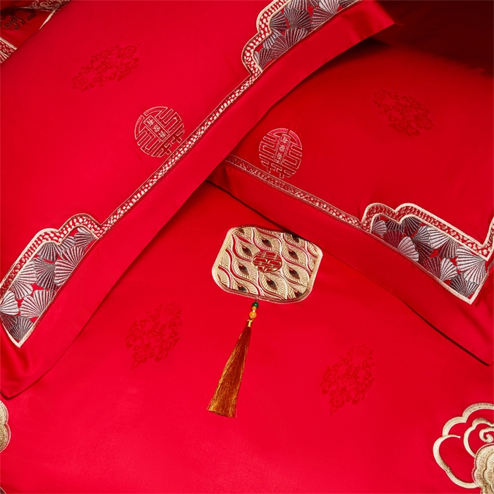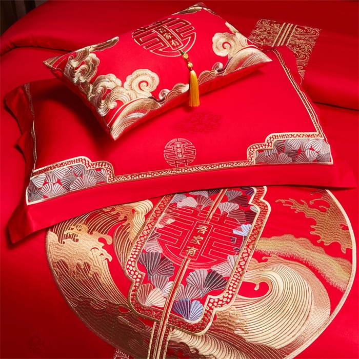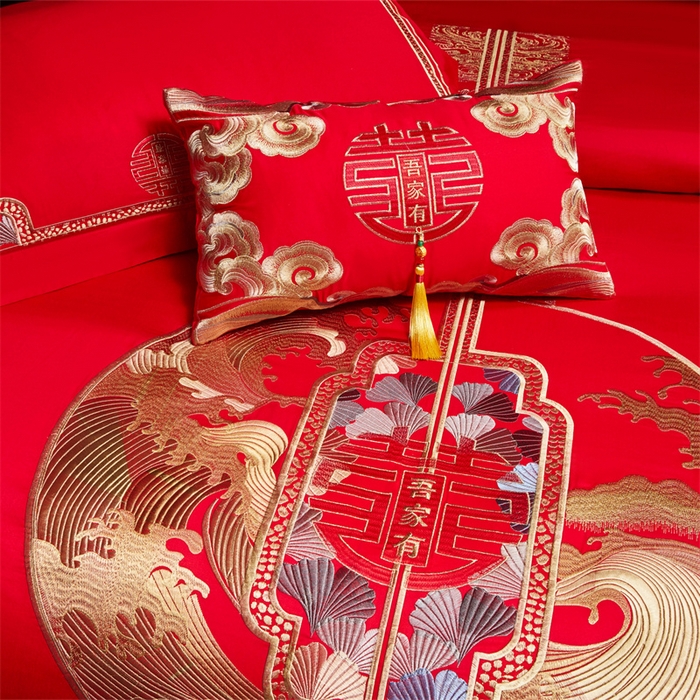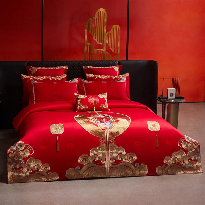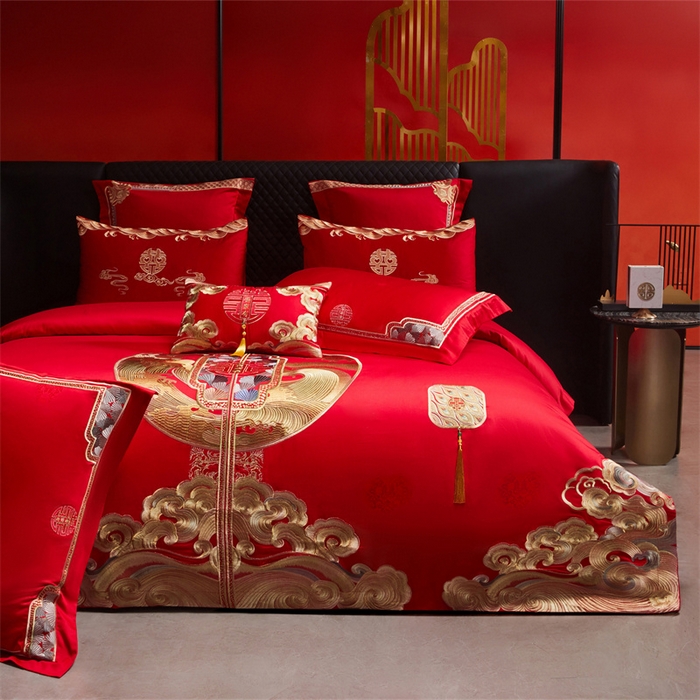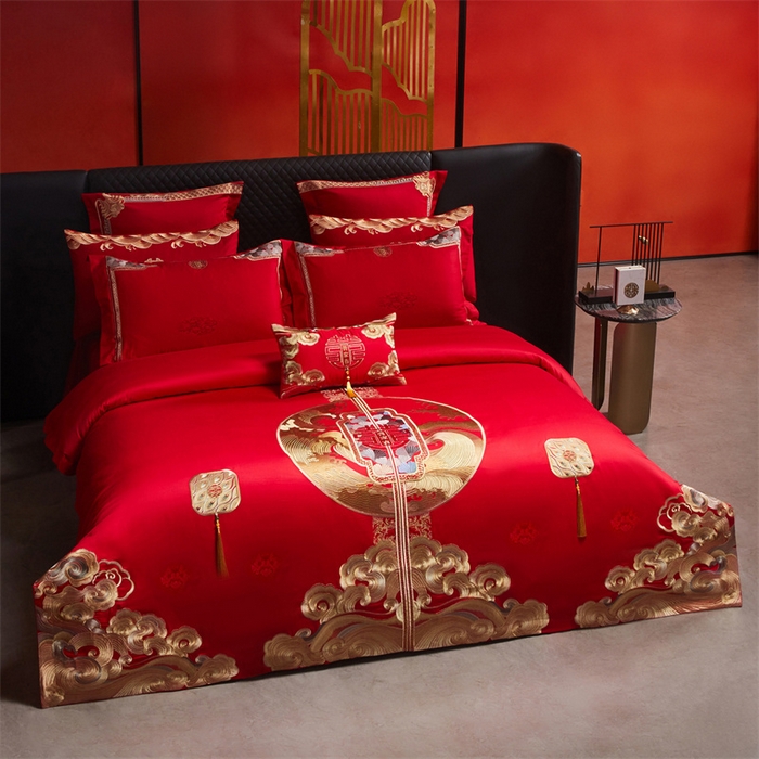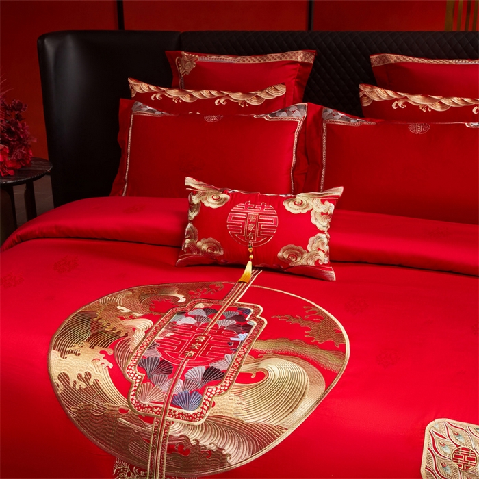 2025新款五全棉贡缎提花新中式婚庆多件套