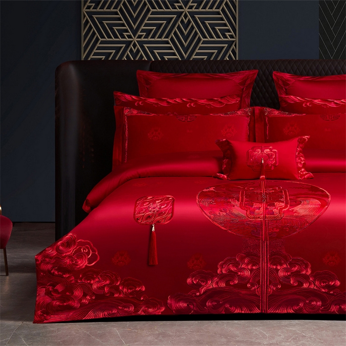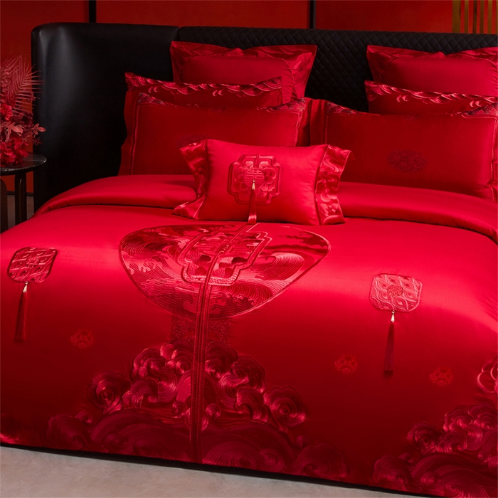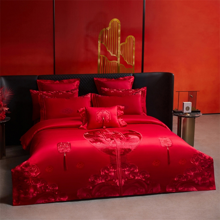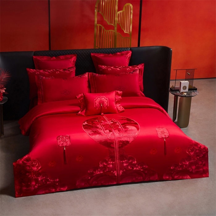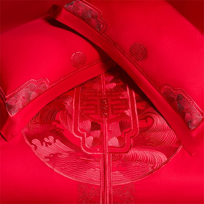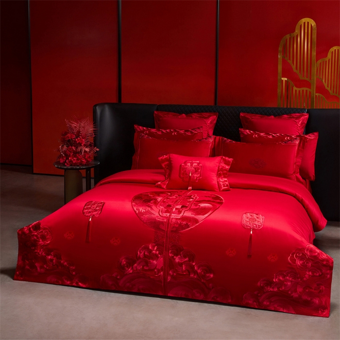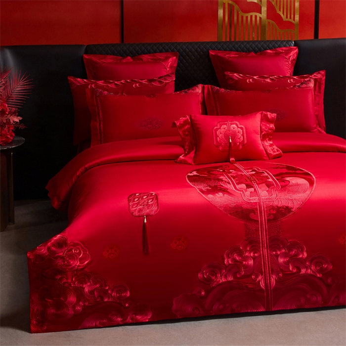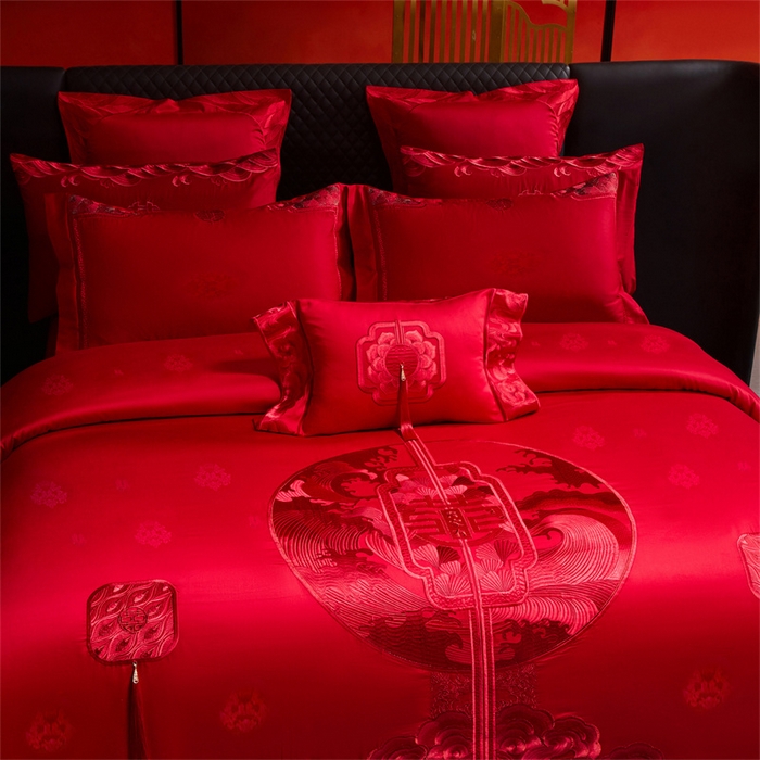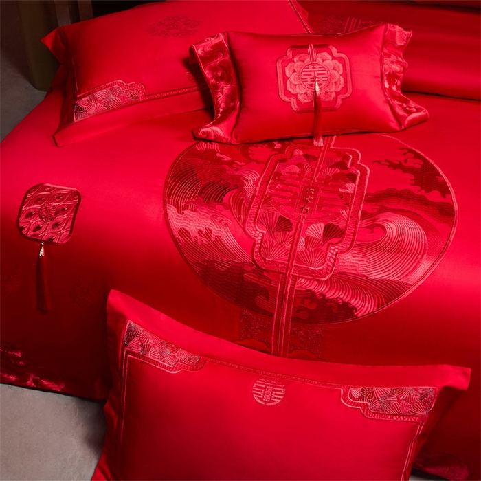 红番天婚庆 (控价)2025新款全棉提花全棉贡缎提花新中式婚庆四件套多件套 听澜同心-红