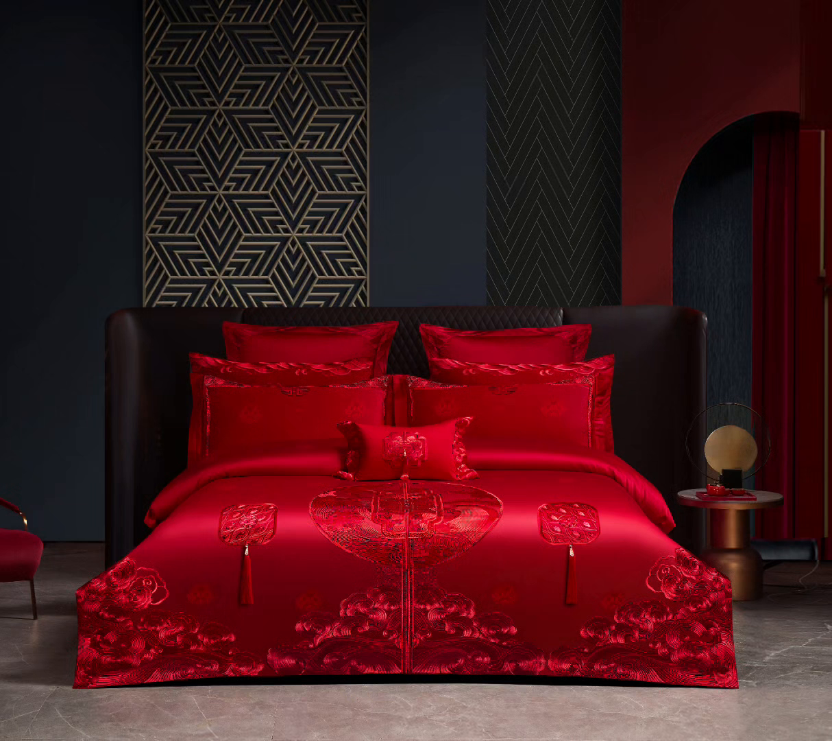 2025新款四全棉新中式刺绣款婚庆多件套